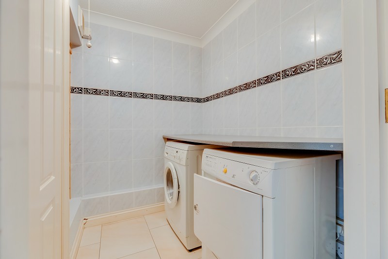 The well-appointed utility room is attractively tiled and fitted with a range of storage cupboards, work surface and plumbing for appliances including a washing machine and tumble dryer.