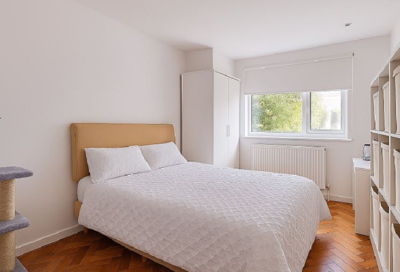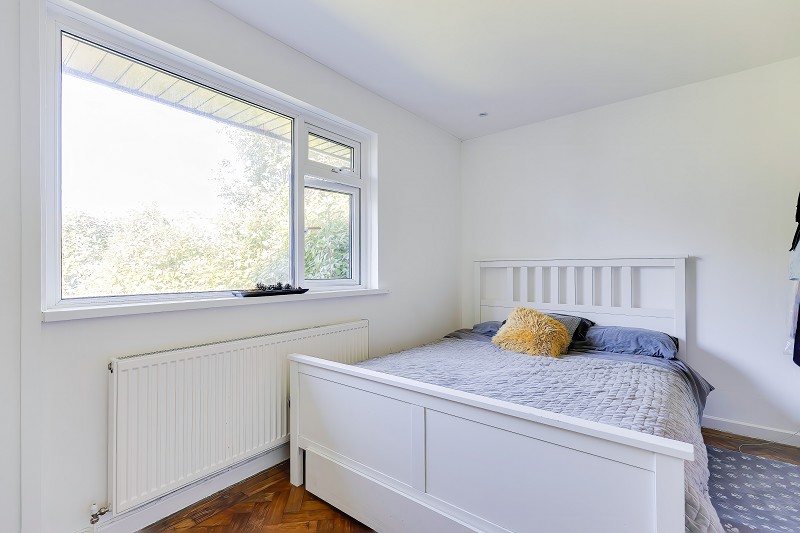 Overlooking the quiet cul-de-sac, a bright and well-sized double room with large picture window.