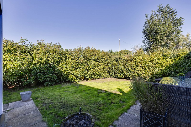A level lawn is bordered by mature hedging which provides seclusion and a pleasant green outlook.