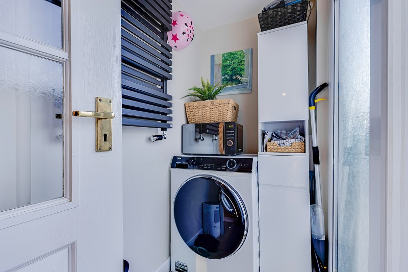 Door opening directly onto the garden and space and plumbing for both a washing machine and tumble dryer.