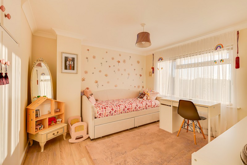 Second double bedroom currently arranged as a delightful child's room.