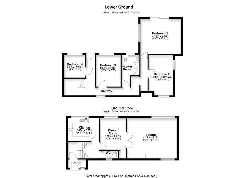Total internal area approx. 113.7 sq m (1,224.4 sq ft)
