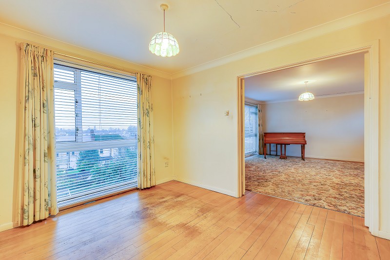 A generous dining room which opens directly into the adjoining living room creating an excellent combined reception space if desired. The room also enjoys elevated southerly views across the village via a large picture window with fitted blinds and curtains.