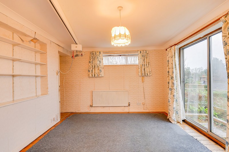 The room features a large sliding patio door opening to the garden which allows excellent natural light and a pleasant outlook.