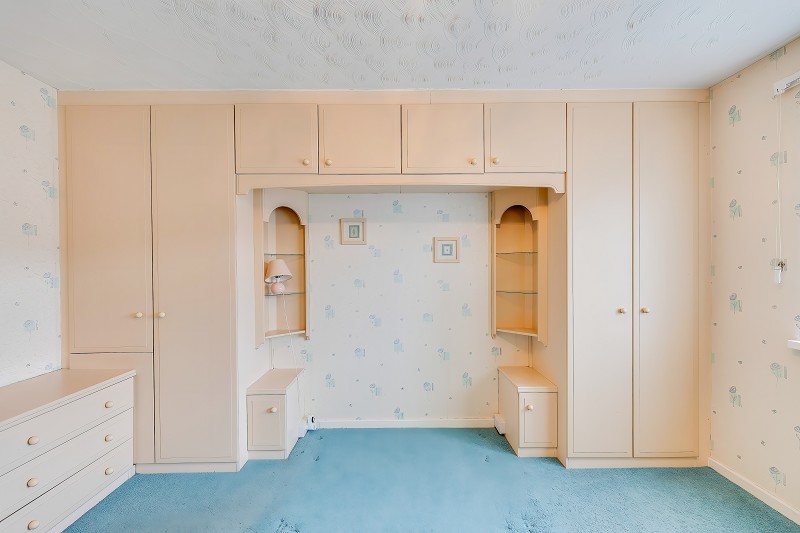 Extensive fitted furniture including wardrobes, overhead cupboards, shelving and fitted drawers.