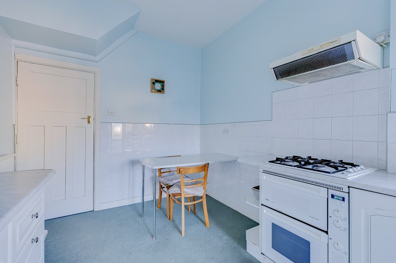 There is extensive wall tiling to the main preparation areas together with a fitted cooker incorporating a gas hob and an extractor hood above.