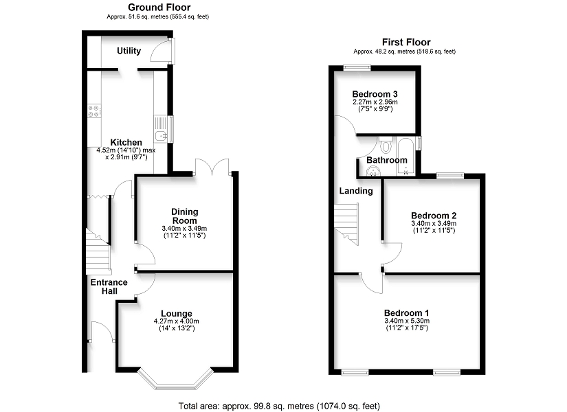 The accommodation includes an entrance hallway, two reception rooms, a rear kitchen and a separate utility room to the ground floor with three bedrooms and a bathroom to the first floor.