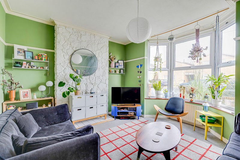 A comfortable lounge with a bay window providing an attractive outlook to the front.